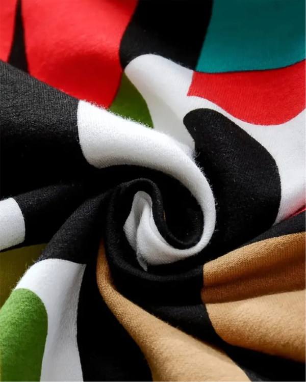 🎨 Black & Multicolor Print – A bold mix of bright colors on a black background for a striking contrast.
