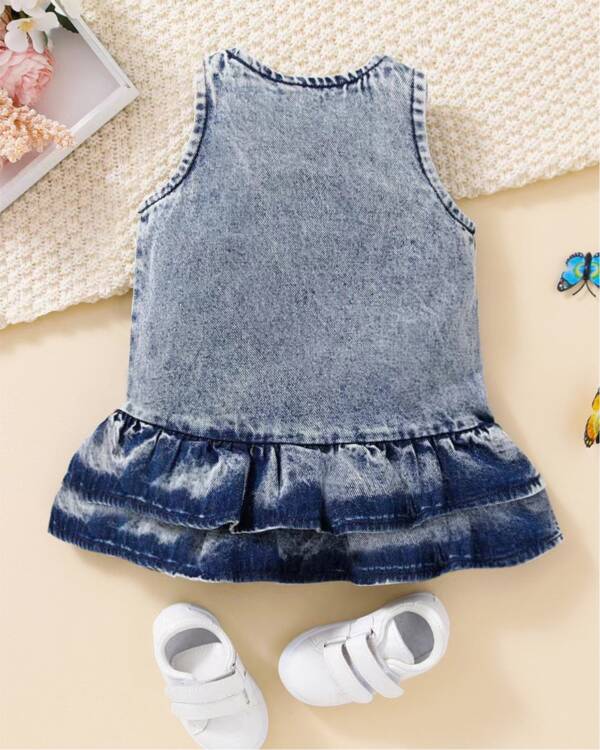 Celebrate the season with the Butterfly Denim Charm Dress—a delightful addition to your toddler’s wardrobe. Crafted from soft, skin-friendly polyester, this adorable dress features embroidery butterfly patterns, a ruffled hem, and a button-down closure that adds a playful yet stylish twist. Ideal for summer days or casual outings, this above-the-knee A-line dress brings comfort and fun with its breathable, stretchy design. Whether it’s a day at the park or a family gathering, this dress is designed to keep your little one comfortable while she looks absolutely charming.