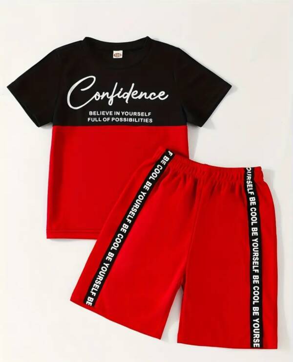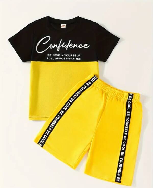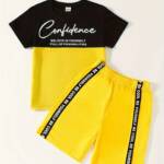 Let your little one step out in style with the Confidence Two-Piece Set! Featuring a trendy contrast colorblock tee with motivational text and matching elastic-waist shorts, this outfit is perfect for casual wear, sports, and playtime.