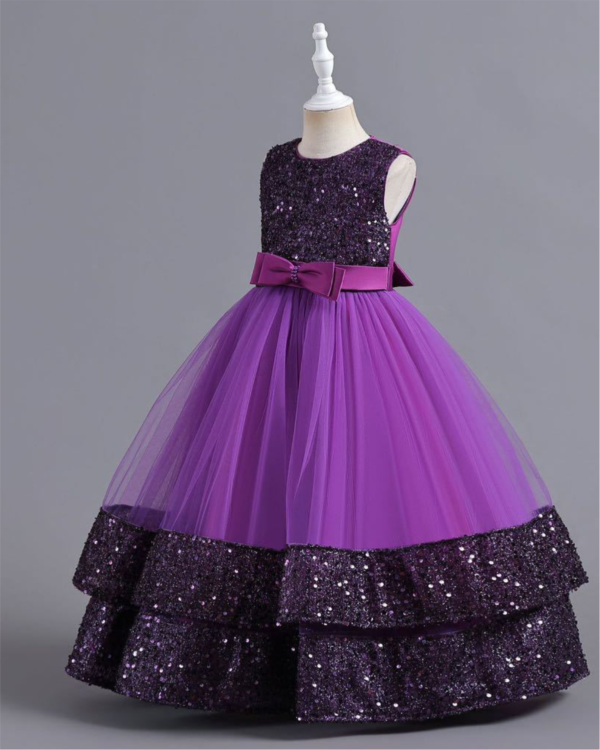 Draped in a rich royal purple, this gown is a showstopper, ensuring your little princess shines wherever she goes.
