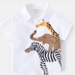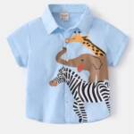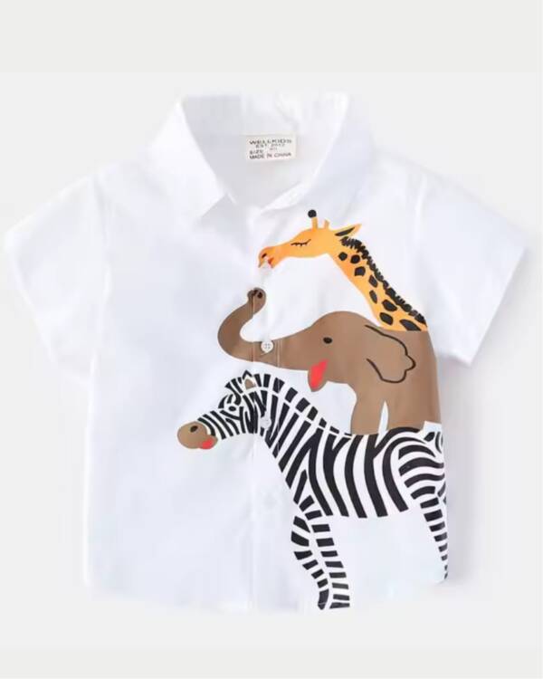 The Wildlife Adventure Shirt brings the magic of the wild to your child’s wardrobe! This short-sleeve button-up shirt is designed with a creative animal stack print, making it a standout piece for stylish little explorers.