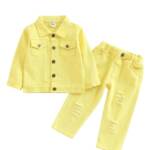 Elevate your little one’s wardrobe with the Trendy Candy Denim Set! This chic 2-piece outfit features a long-sleeve lapel coat and ripped trousers, blending style and comfort for a fashionable yet playful look. Perfect for casual days or special occasions, this set is a must-have for your toddler girl.