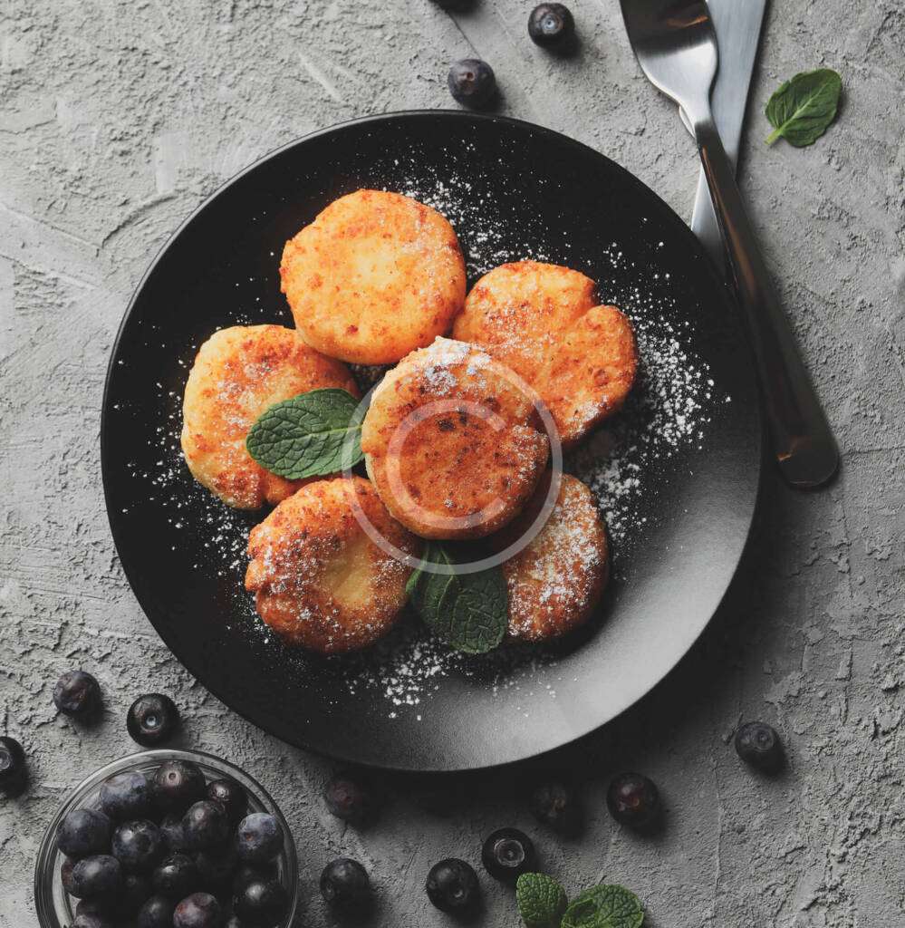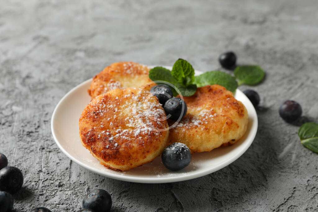 Cheese pancakes with blueberries